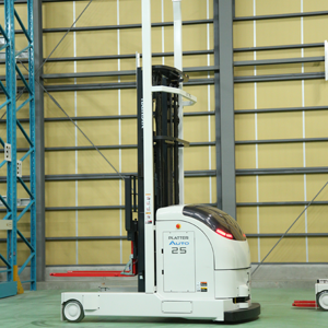 「自動荷役システム」は、安全第一主義を実現するためにとても有効です。2台の無人フォークリフトと移動ラックの組み合わせは、出庫計画に合わせて最適な動線を効率よく導き、無駄を排しただけでなく、事故を起こさない安全確保にも繋がります。